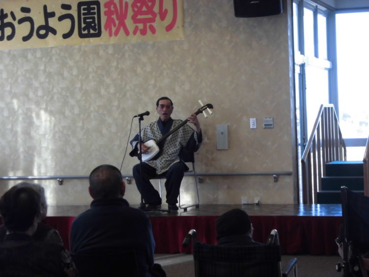 お次は花田一蔵様の三味線演奏。お客様とお話をしながら軽快に弾いておりました。一曲弾き終わるたびに拍手が聞こえておりました。