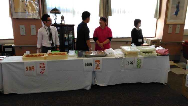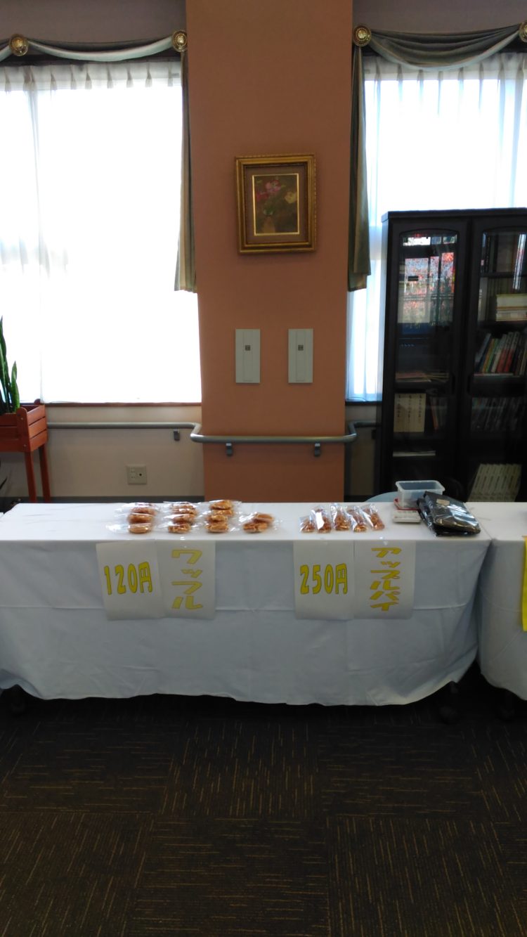 おうよう園と系列でもあります、株式会社介護サポートより衣類の販売。介護サポートで運営しているカフェリベロのワッフルとアップルパイも販売されました♪