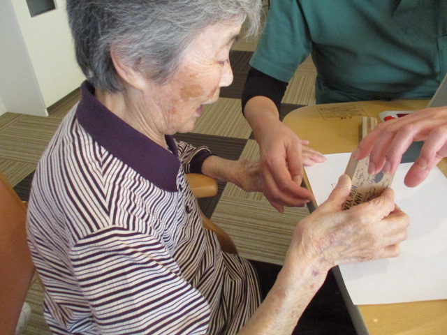 沢山の色のスタンプを選び、談笑されながら作成しました♪
