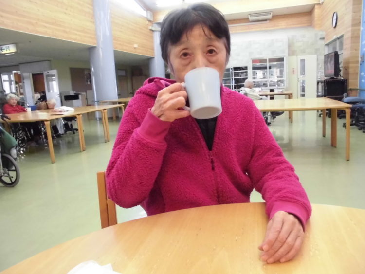散歩をして少し体が冷えてしまったので、食堂で温かいコーヒーを飲んでほっと一息つかれておりました。