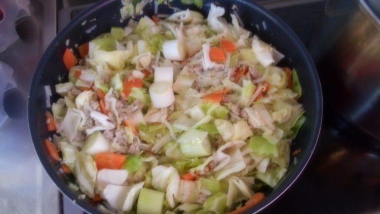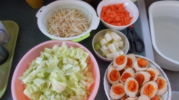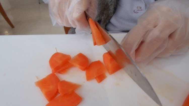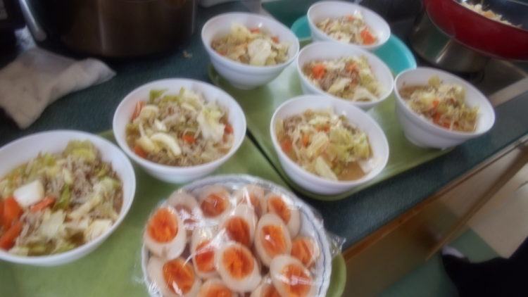 食材が切れたので、これからは職員が調理行ないました。これらの食材を軽く炒めて