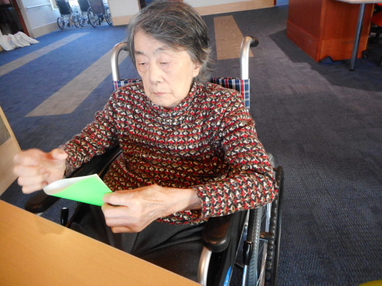 T様は「折らない折らない。」と言いながらも折り紙を手渡すと集中し夢中になっておりました。