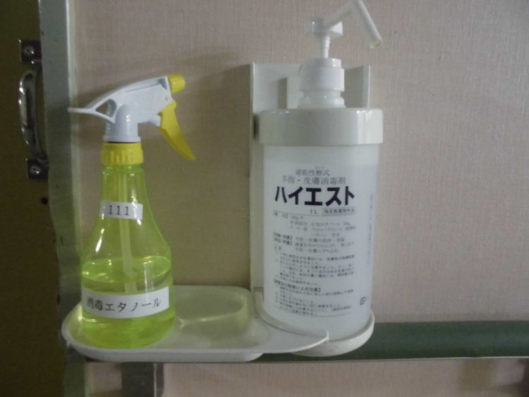 このように日々手洗い・うがい、ハイエスト、エタノール等使用し消毒に努めております。