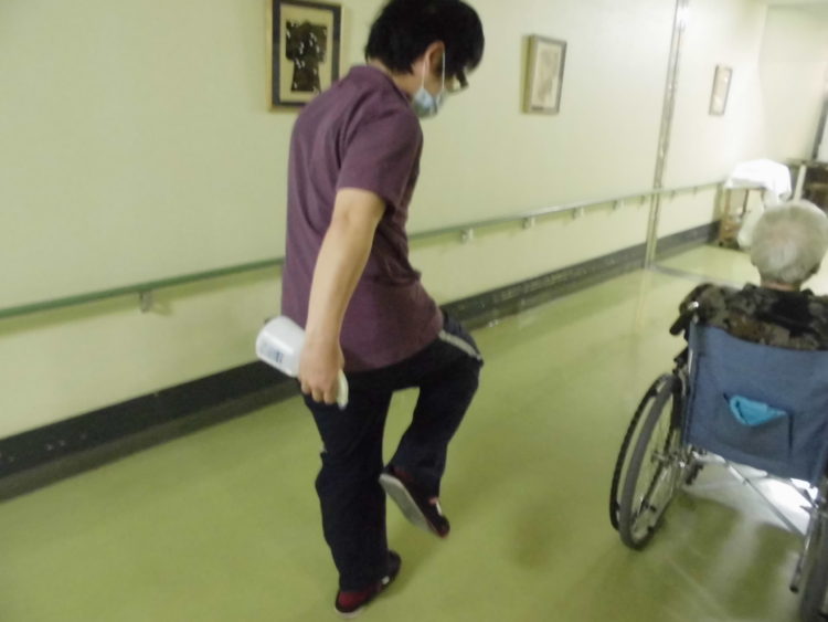 そして、お客様の車イスにもエタノールを噴霧します。