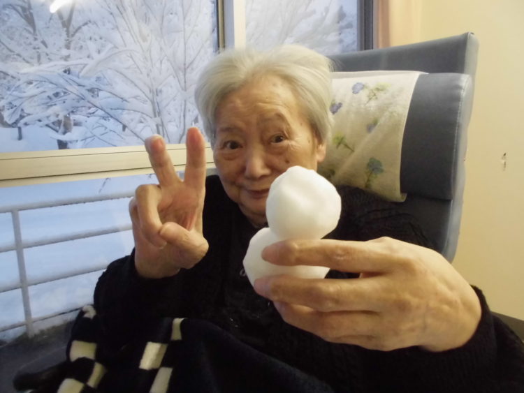 特養のお客様にも雪を丸めて、渡したところ「わー、しゃっこい」と声を上げていらっしゃいました。