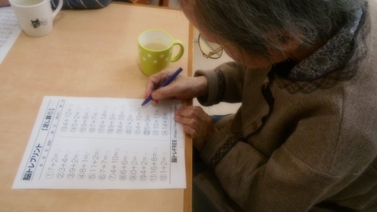 答え合わせの結果、全問正解をしたのが、K様お一人でした。ご家族様から、計算は得意だと伺っていましたが、その通りでした。「引き算なのに、足してしまったじゃ」とか「掛け算してしまった」などの声があがり、「やっぱり、ちゃかしだものな」と大笑いしていました。