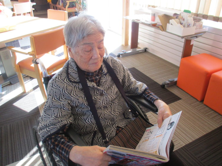 こちらは、本を読んでいる様子です♪職員と一緒に読み、満足されておられました♪