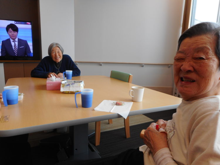 こちらは食事席が一緒の仲良しさんです。食事やお茶会の時間になるとたくさんお話しております。