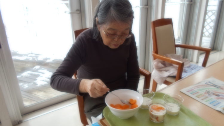 冷蔵庫で固めたら、みかん入り牛乳寒天の出来上がりー!