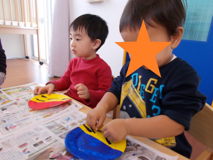 今日はうさぎ組は豆まき会に向けて鬼のお面製作を行いました。