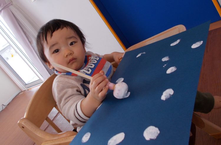 りす組のHくんはお絵描きをしたり、タンポでスタンピングをしたり…製作を楽しみました◎