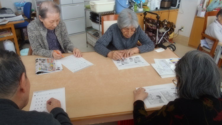 今日はプリントを利用して脳トレをしました。