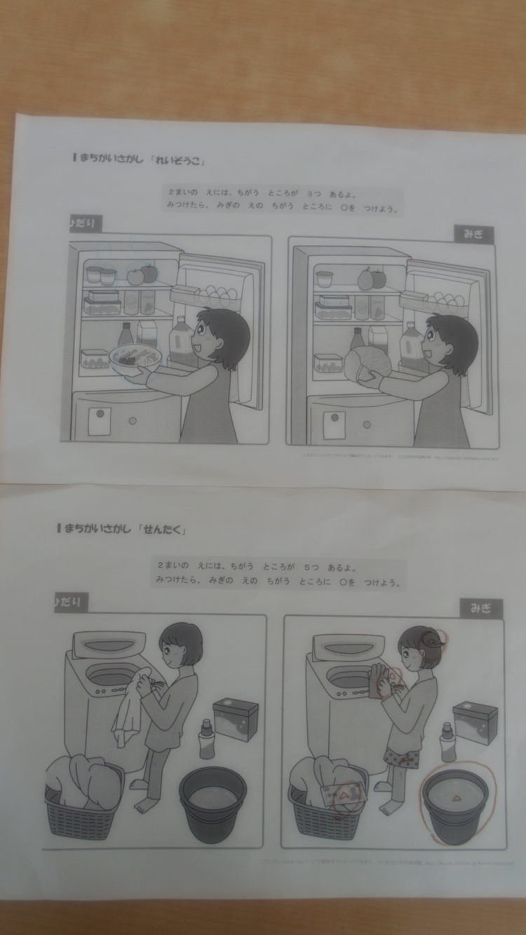 間違い探し、たし算、ひき算の3種類の問題を解いて頂きました。