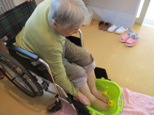本日は、入浴されないお客様が足浴ををされている様子です。