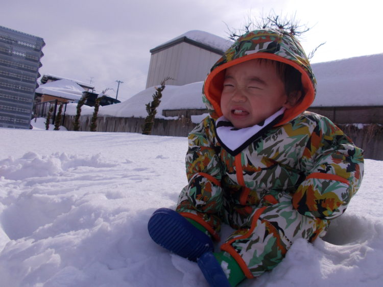 雪遊びがちょっぴり苦手な甘えん坊のHくんは「抱っこして~!!」とこの表情ヾ(・ω・)ノ゛