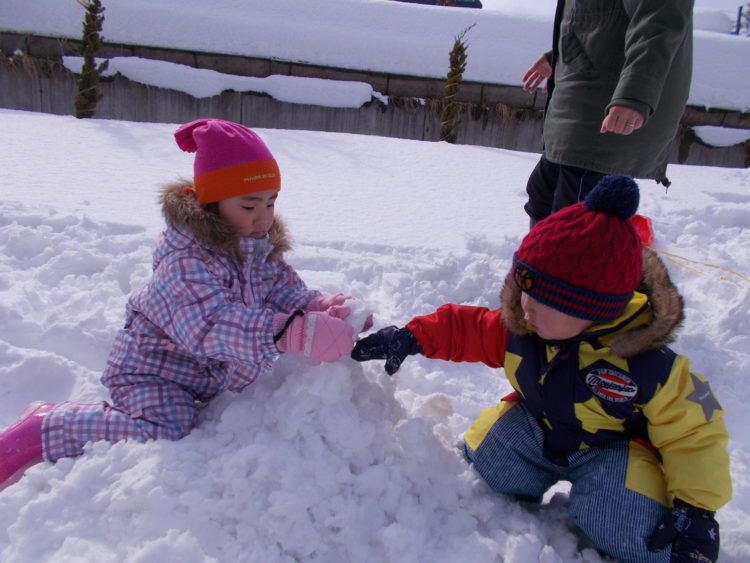 朝のうち雪が降り、今日も寒い一日かな…と思っていたら、雪遊びしたい!!という子ども達の思いが通じたのか、一斉活動を始める頃にはお日様も顔を出しいいお天気に!!!!