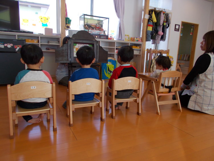紙芝居が終わった後「お」は何だった?と聞いてみると「…おさない」と答え、きちんと伝わっていたようです(^^)