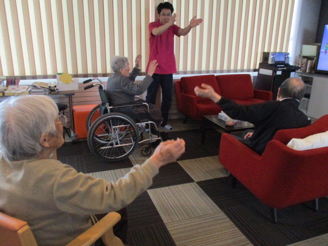 職員と一緒に、曲に合わせて行う体操をしています♪
