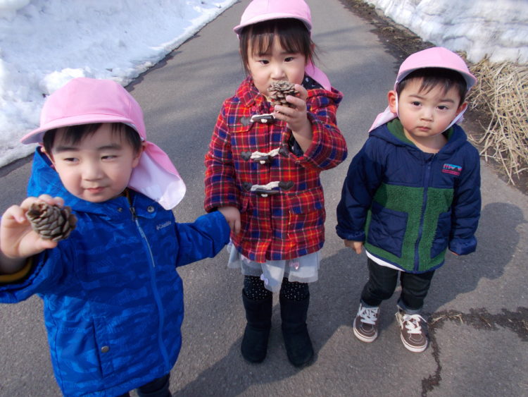 雪解けの中に、まつぼっくりを発見!!