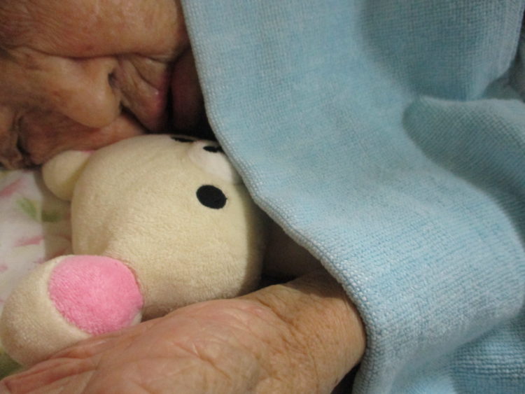 朝起きてから、ご飯を食べるとき、また寝るときなど、肌身離さずいつも一緒に過ごされております。そして、いつもその姿に私は癒しを貰っております。