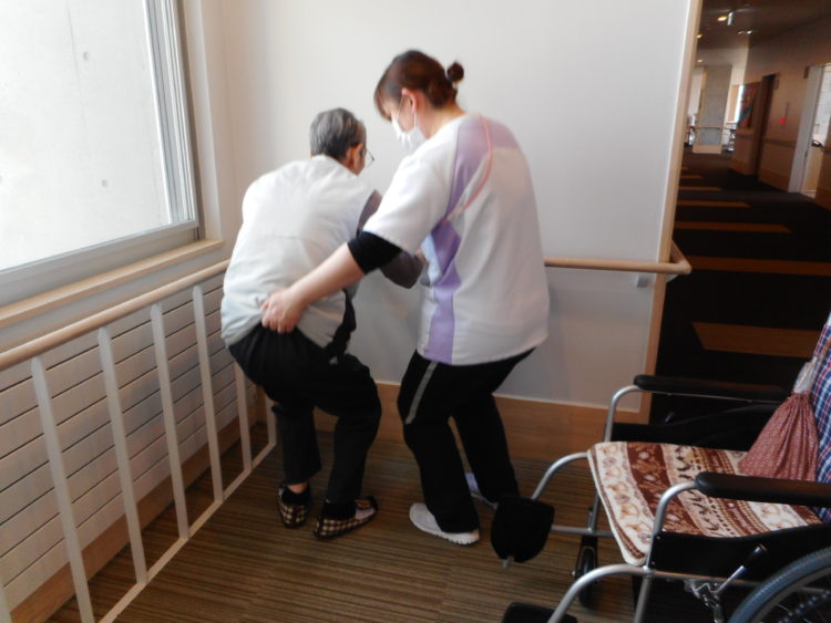 今日は、O様と一緒に手すりを使用してのスクワット(目標20回、2セット)と