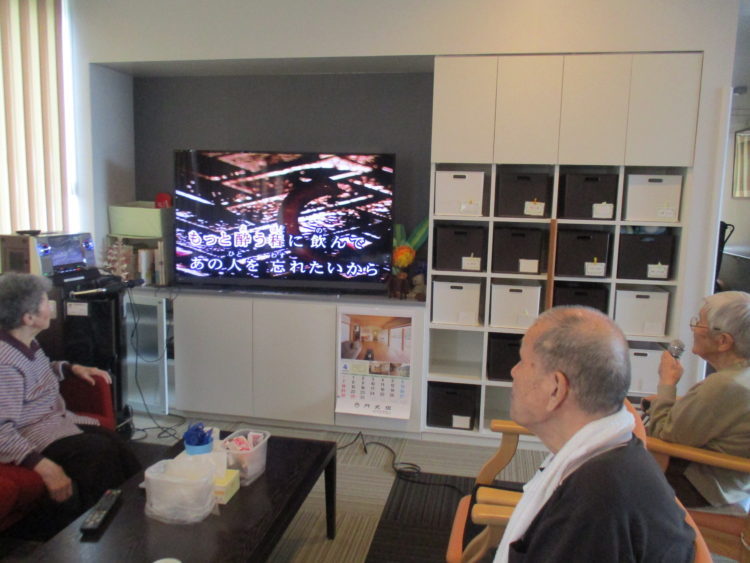 T様の後、S様は「岸壁の母」を熱唱されておりました♪皆様それぞれ歌われ「あ~^-^歌ったなぁ~♪」と喜ばれておりました。カラオケの後は体操をされ元気いっぱいです!!また楽しく過ごしましょうね♪♪