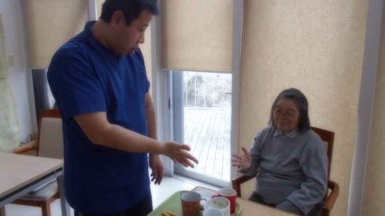 お客様同士の会話の中から順番の話になり、職員が会話の間に入って