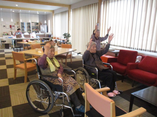 毎日の事なので、お客様方も職員の「ラジオ体操をしましょう」の声掛けに「どれーやるがなー」