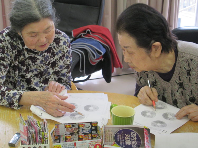 今日は脳トレを行いました。今日の問題は、数字の仲間外れを探す問題や、言葉さがし、間違いさがし、迷路を行いました。