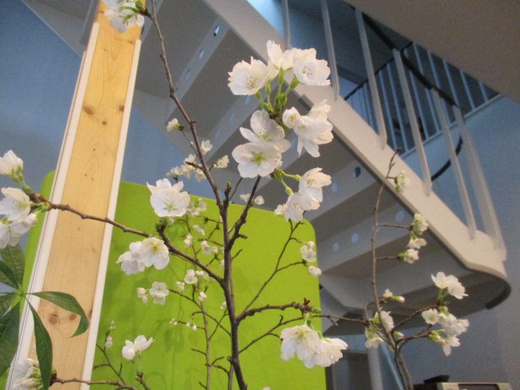玄関からホールへ移動されると一番最初に見える場所に桜を置かせて頂いてました。