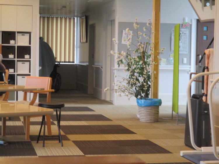 春が遠くなったと感じてしまう天気ですが、小規模多機能ホームのホール内では桜が咲きました。