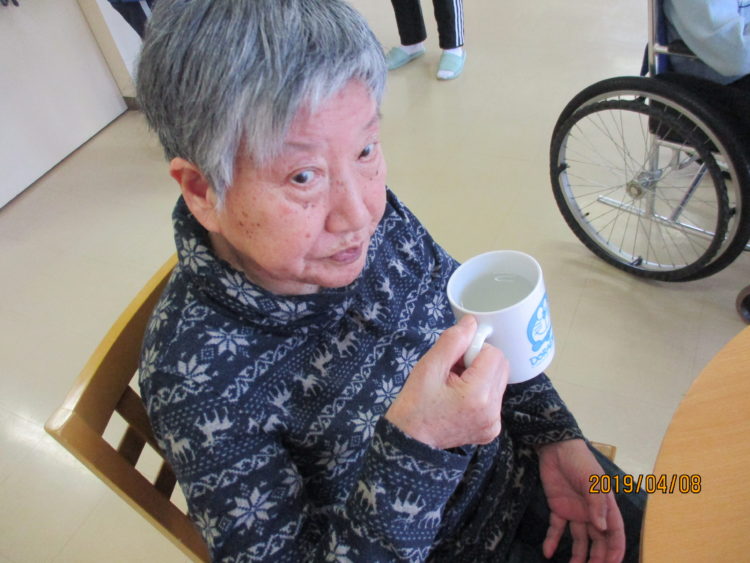 さて、以前のブログでもショートでお洗濯物を毎日一生懸命頑張っているお客様のお話をしたと思いますが、今日は仕事後の一杯を楽しんでいるT様を撮影しました。私が出勤するとT様はエプロン干しを終えてももジュースを飲みながらゆったりしておられました。「今日もお疲れ様です」と声掛けすると「ジュース美味しいです」とたくさん飲んでおりました。軽作業を毎日続ける事で習慣となり、頭の体操にもなるので毎日職員と一緒に行っています。お昼の体操も含まると活動量も増えて夜は快眠できると思います。体や頭を使うことってとても大事だなとつくづく思いました。これからも元気で毎日笑顔が見られるといいですね。(ショートA・T)