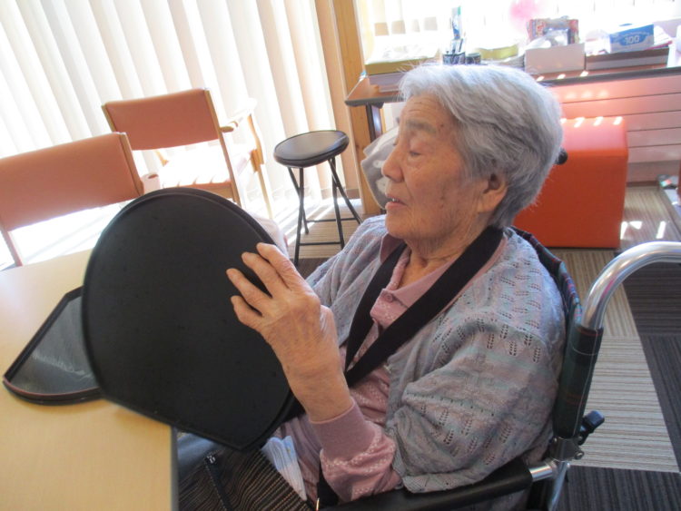 「これだば私でもできそうだ」と、お盆をK様に拭いて頂きました。