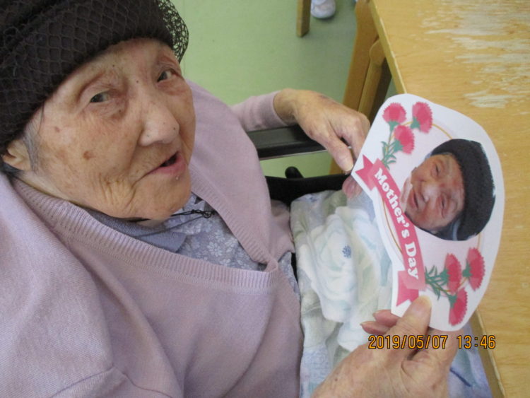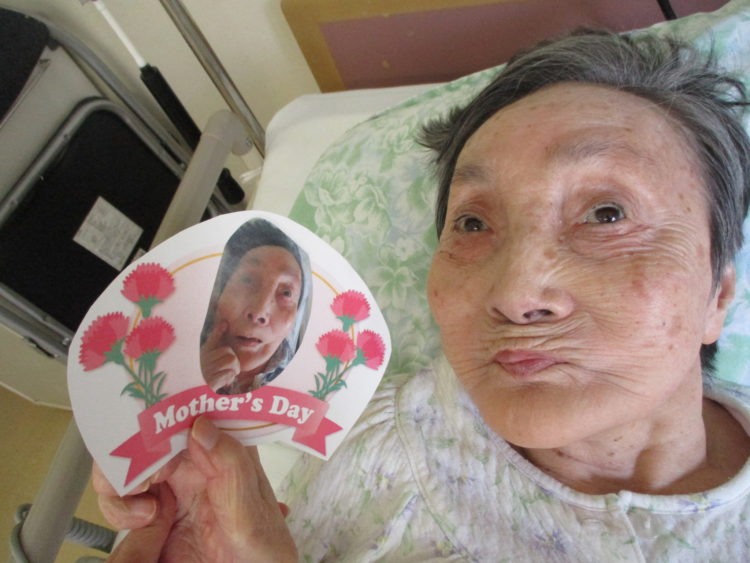 K様は「これ、私なんだが~」と不思議そうに見つめておられたので母の日がもうすぐなので作ったんですよ~~とお伝えすると、「あら~、もう母の日なんだが~、娘達に会いたいな~」と話されておられました☆