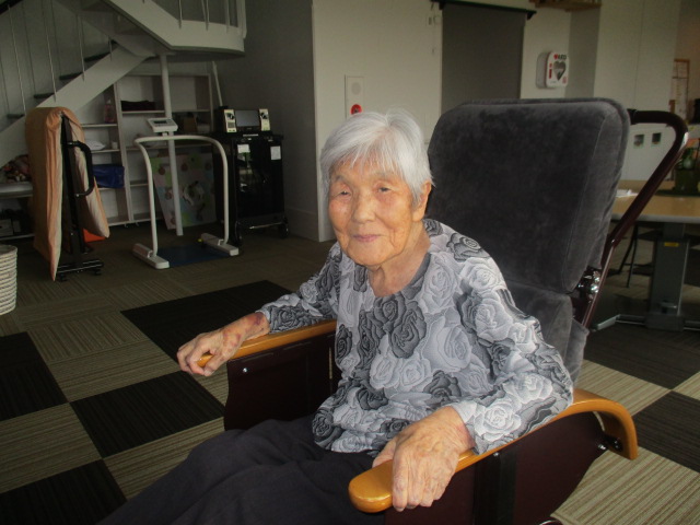入浴後のT様に「水分補給しましょう。何飲まれますか」とうかがうと「ジュース飲みたい」ととても良い笑顔を見せて下さいました。「風呂サッパリした」と話されておりました。