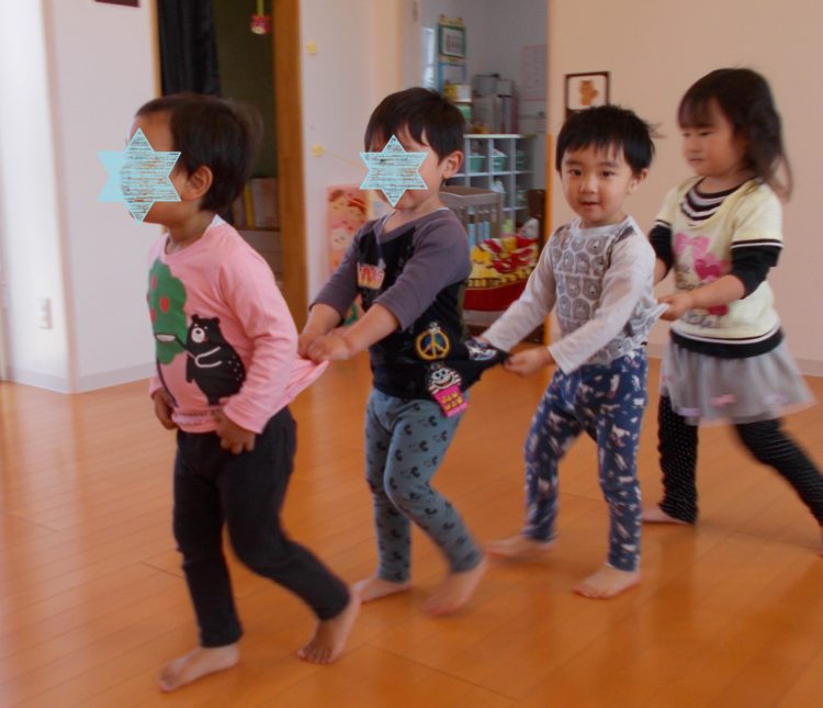ピアノの曲に合わせて、うさぎになったり、へびになったり・・・。