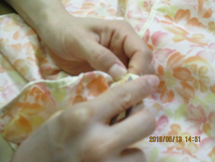 さて今回は、衣類の修繕などを担当しているO介護士に撮影をお願いしました。