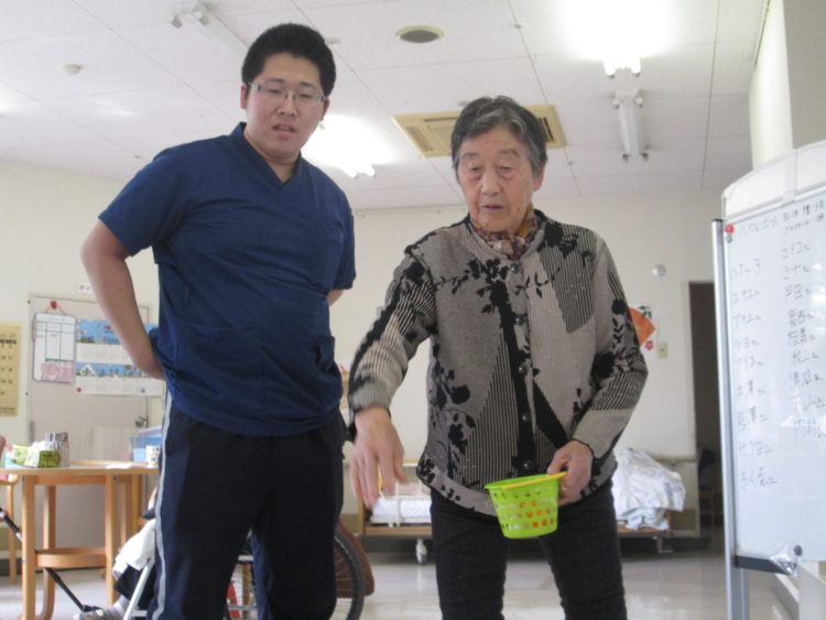 見ていると簡単そうなのですが、思ったほど弾まなくて入らないとか、逆に弾みすぎて飛び出てしまったりと皆さま、苦戦されていました。投げているうちにコツをつかんだ利用者様は、うまく入れて最高得点15点をとりました。一位です!