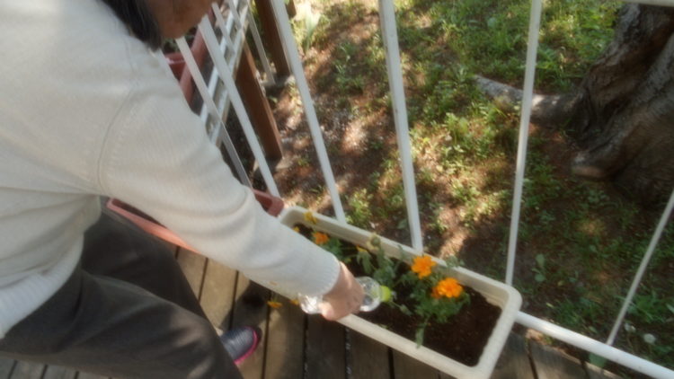 丁寧に水をかけてくれたI様。花たちも、喜んでいることでしょうね。ありがとうございました。
