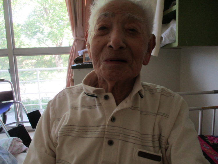 I様は最高齢の103歳の方です。笑顔が素敵な男性で、車椅子で自力移動されるなど、とても若々しい様子です。