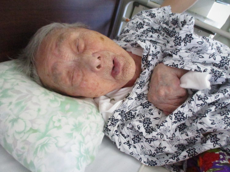 お部屋でお休みのS様は102歳の方です。今日は天気がよく気持ちのいい風がお部屋に吹きとても快適そうでした。