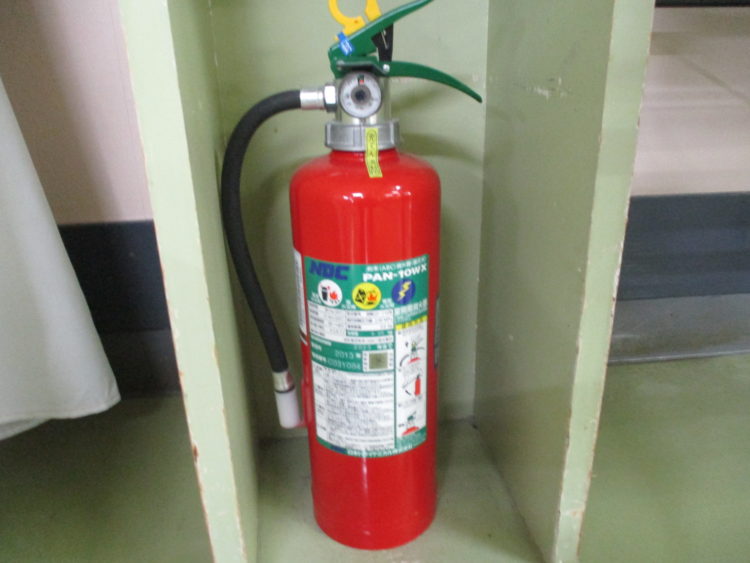 おうよう園内に数箇所設置してある消火器です。他の場所にもすぐに使用できるような位置に配置してます。