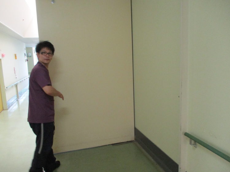 そして、避難誘導終了後に閉める防火扉です。こちらもすぐに開閉可能です。