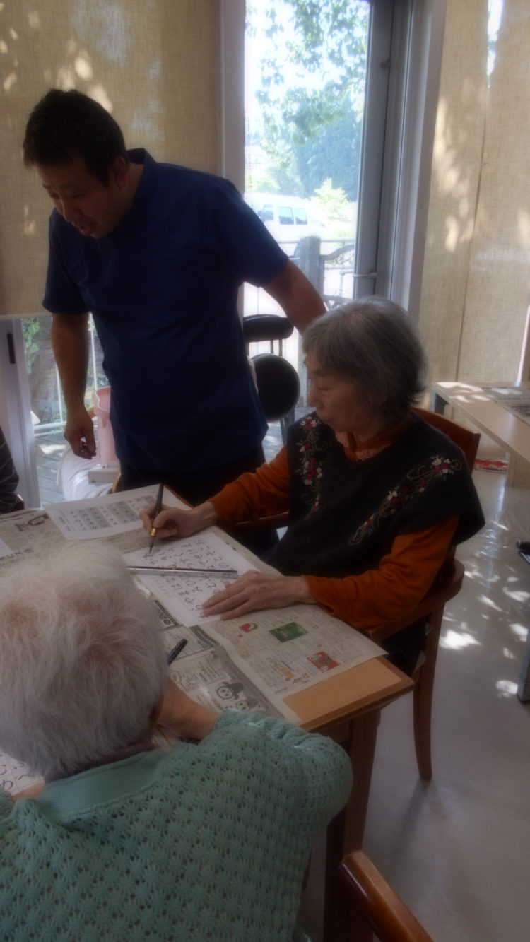今日の活動ですが、民生委員の方々のなかに書道の先生が