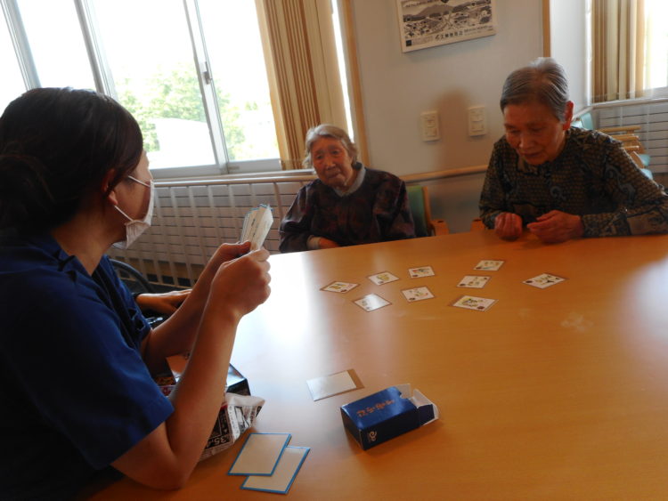 本日、ショートステイ山崎では、「津軽弁かるた」をやってみました。