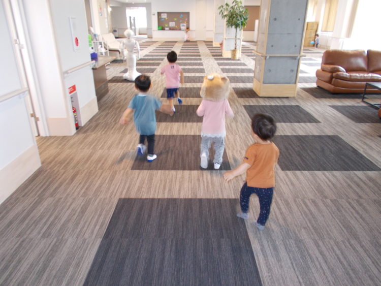 広~いホールと長~い廊下を使ってかけっこしたり、
