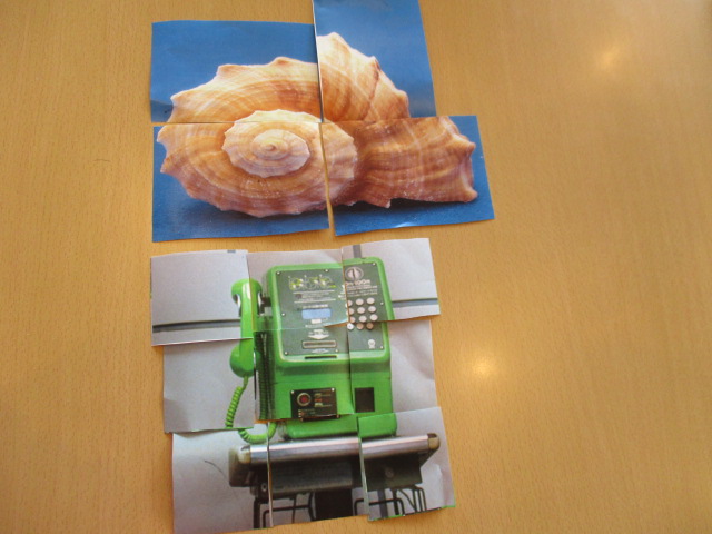 S様「何の、絵だろう」と話され、ハサミで切って、貼り合せてみよう!とのことで、貼り合わせてみました♪