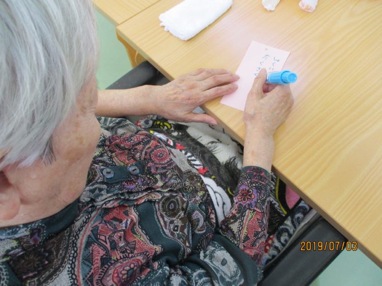 願い事が決まり、いざ!短冊にペンをはしらせ