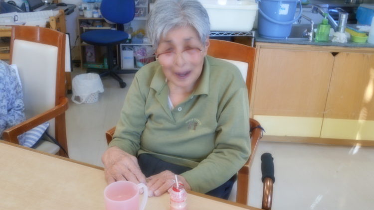 午後には入浴も済ませて、サッパリした様子のY様、冷たいジュースを飲みほしていました。