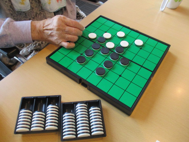 本日は午前よりS様とO介護職員がオセロ対決にて白熱中でございます。